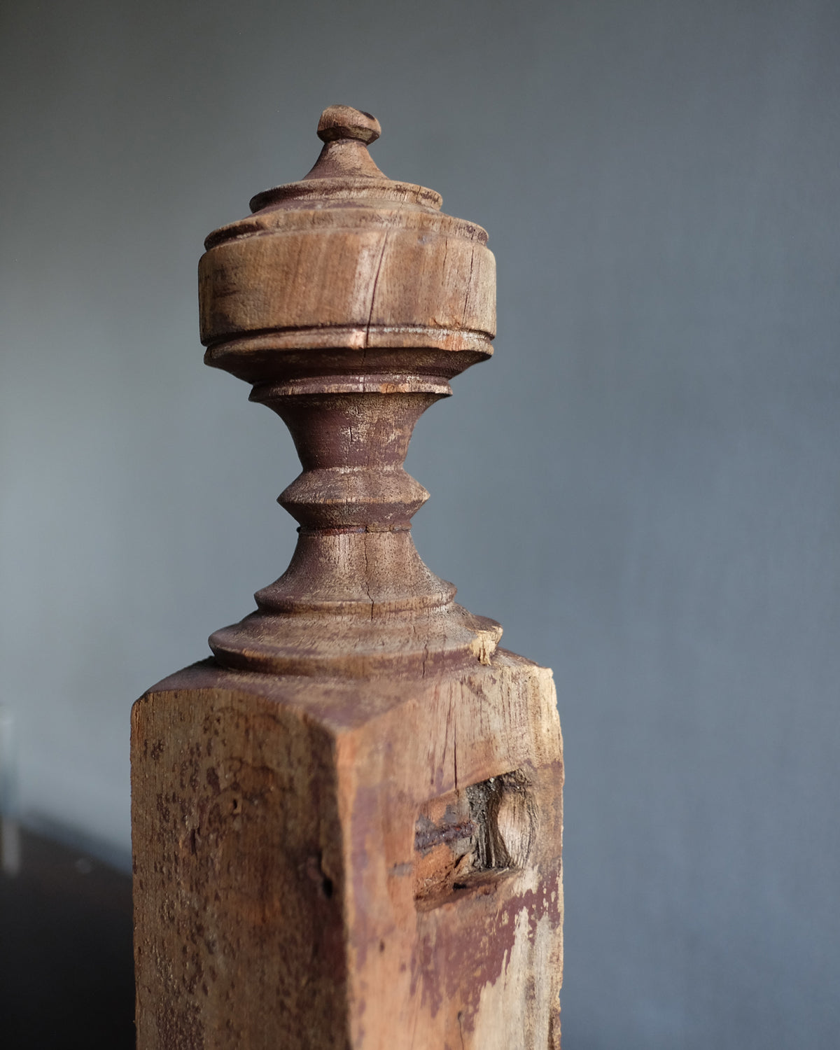50年から100年ほど前に、タイで実際に使われていたものです。無垢の木材が使用されていますが、経年変化や当時の釘などがそのままに残っており、歴史を感じさせます。
