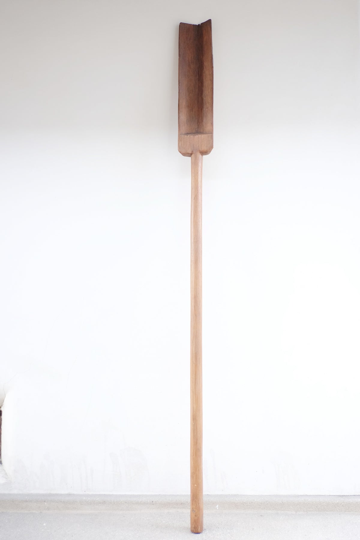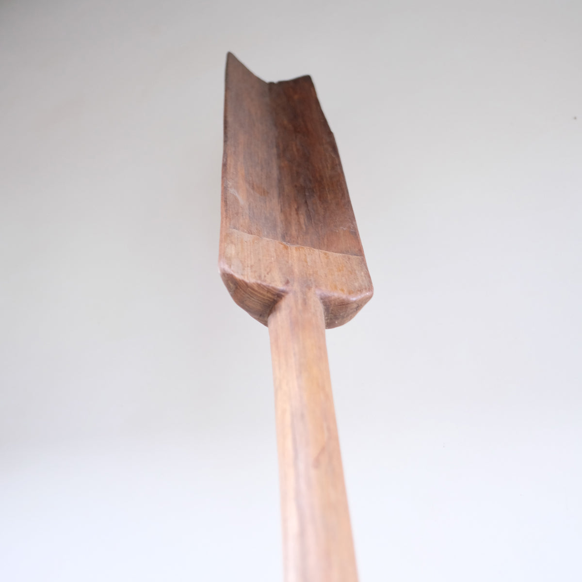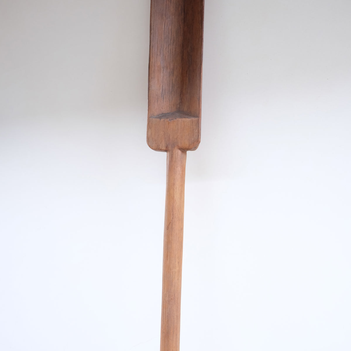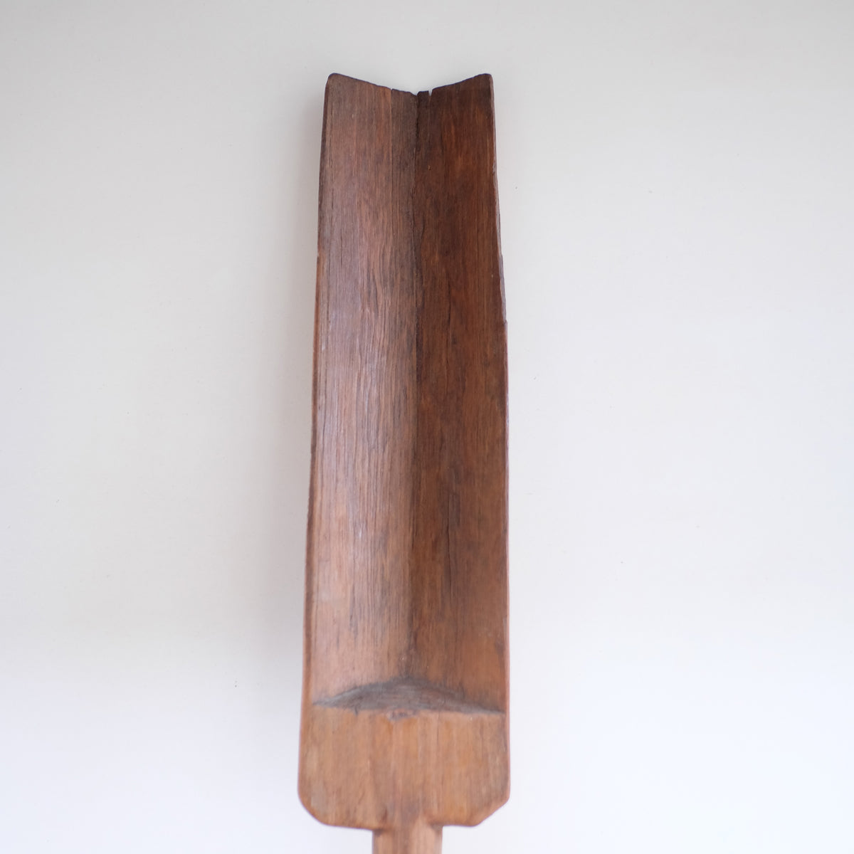 穀物類の移し替え用の農具として作られた、大きなスコップ状の木製ライスパドル。50年から100年ほど前に、タイで実際に使われていたものです。無垢の貴重な木材が使用され、経年変化が味わい深い一品。