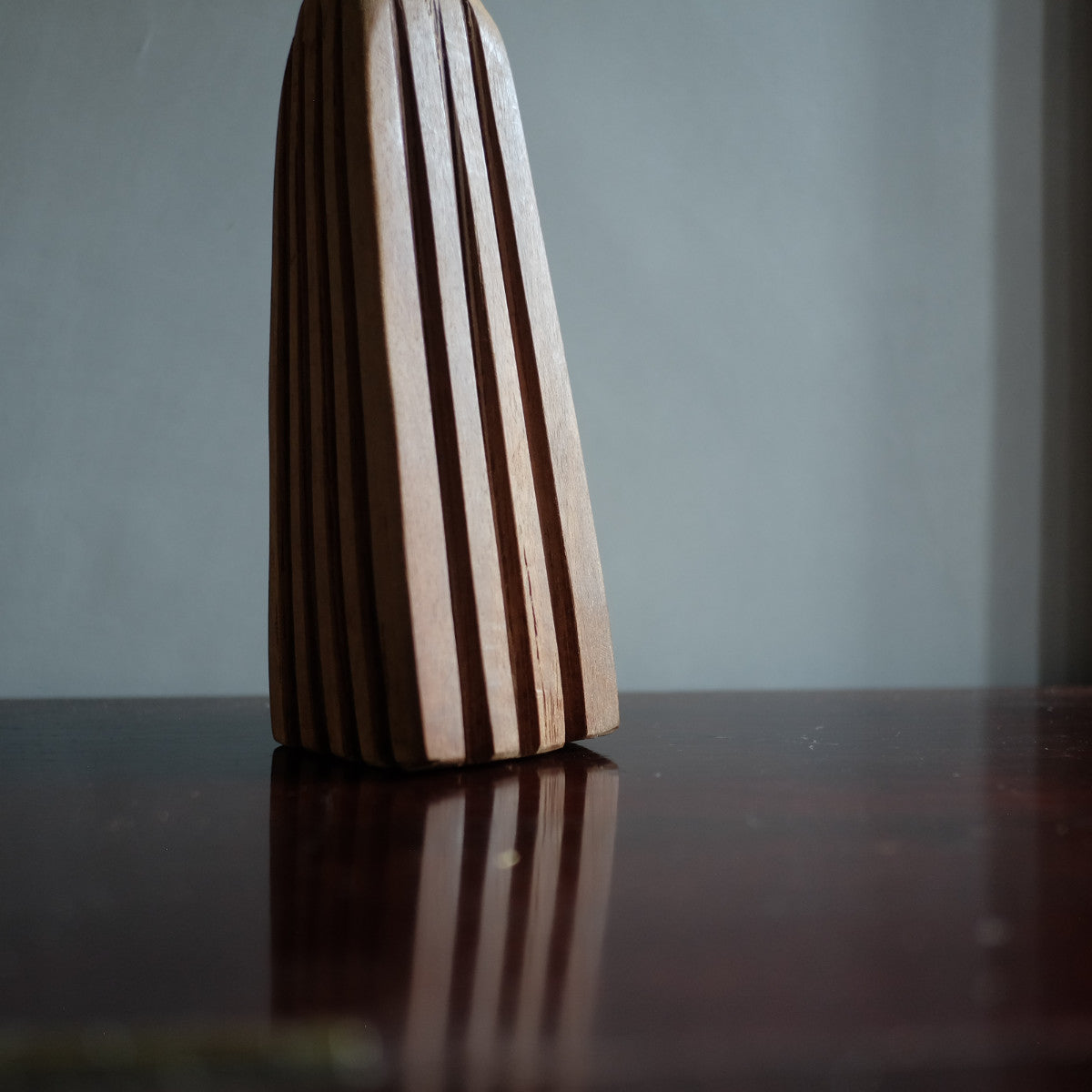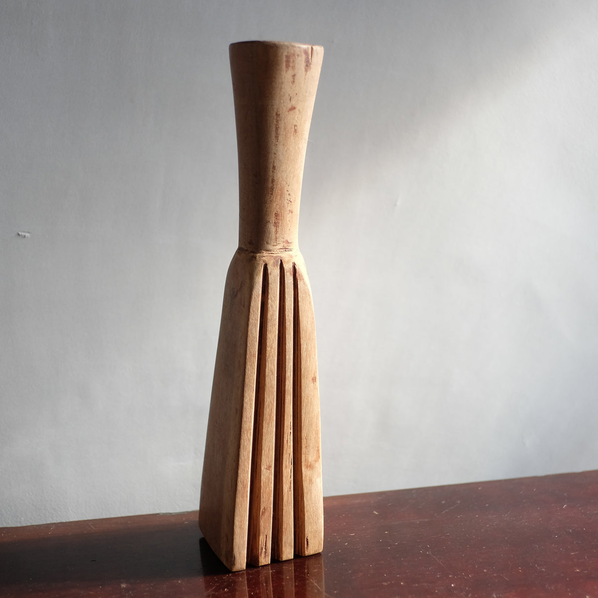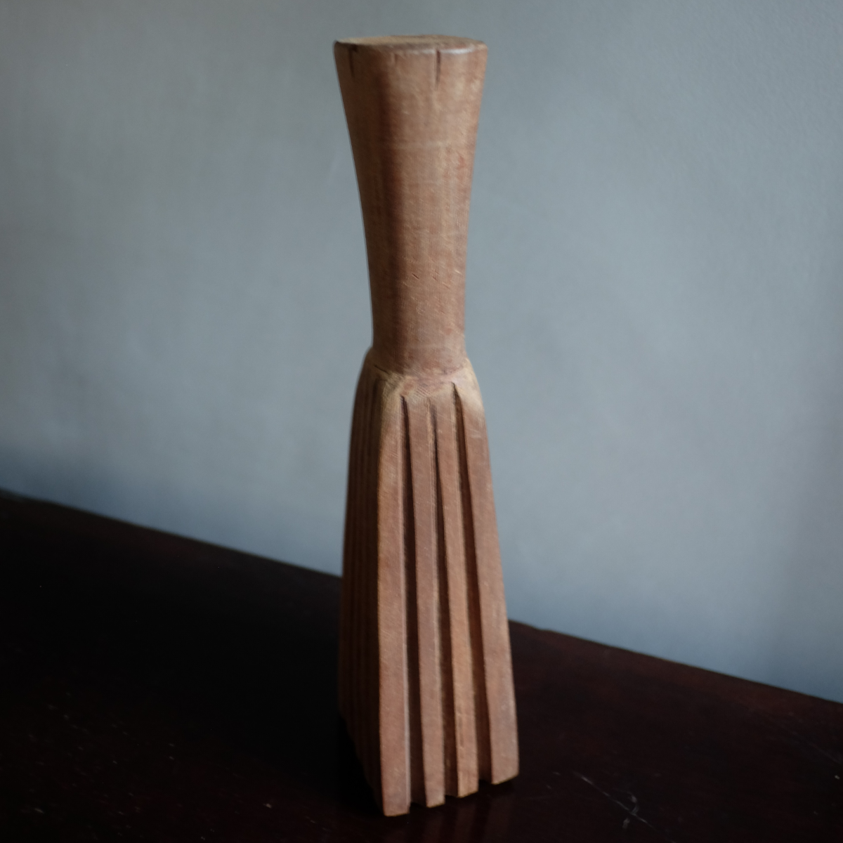 こちらは、樹皮を打って伸ばすための木製ハンマーです。装飾などはないシンプルな作りですが、大切に作られた道具ならではのフォルムが美しい一品です。