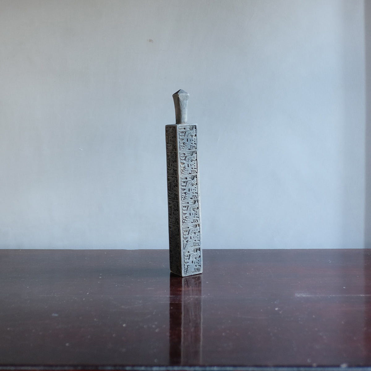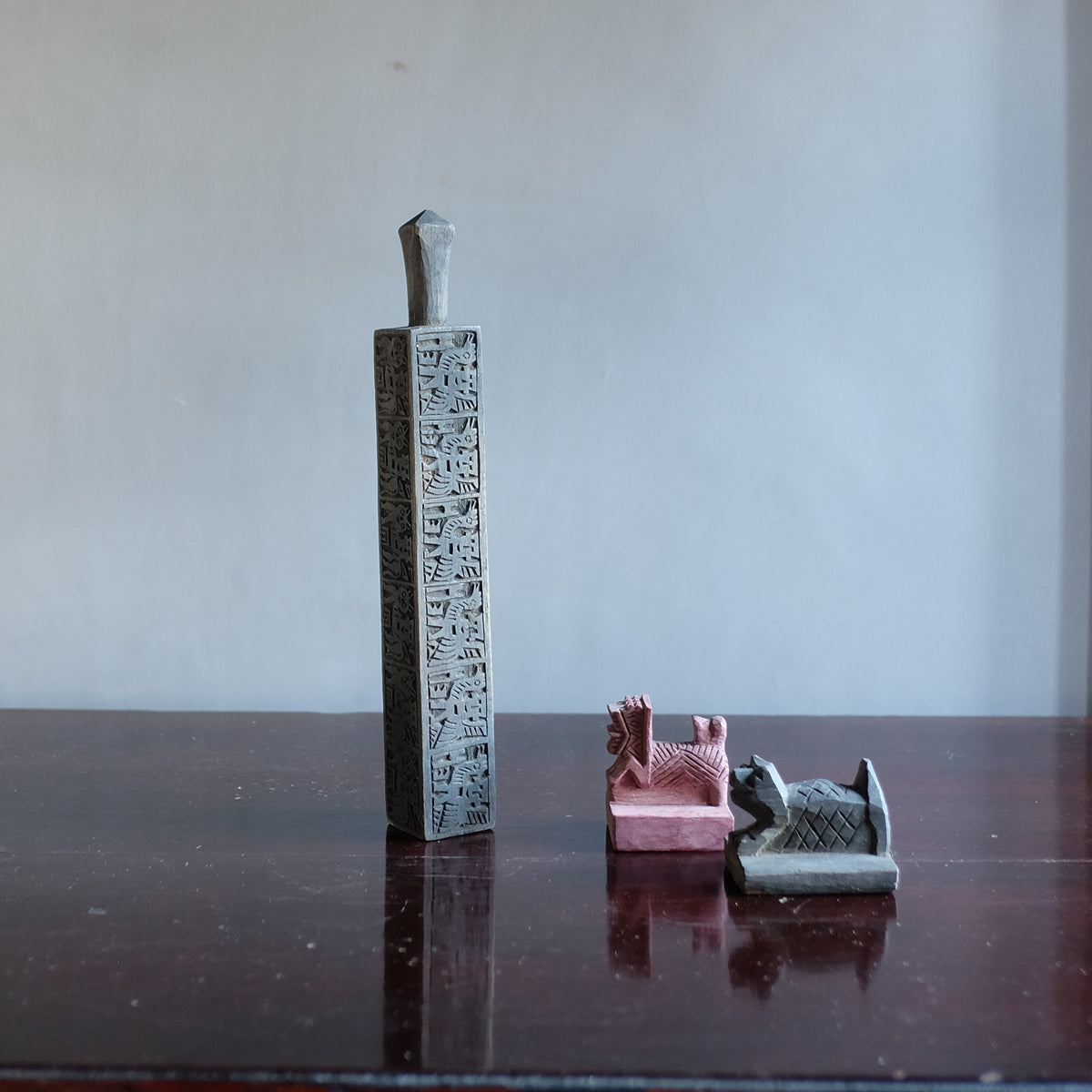 4面にそれぞれ異なる動物の紋様がある、珍しい形状の木製スタンプです。祈りを記すために、血を表す赤オレンジ色のインクが使われるそうです。記された紙は祭壇で燃やされ、天に昇ります。